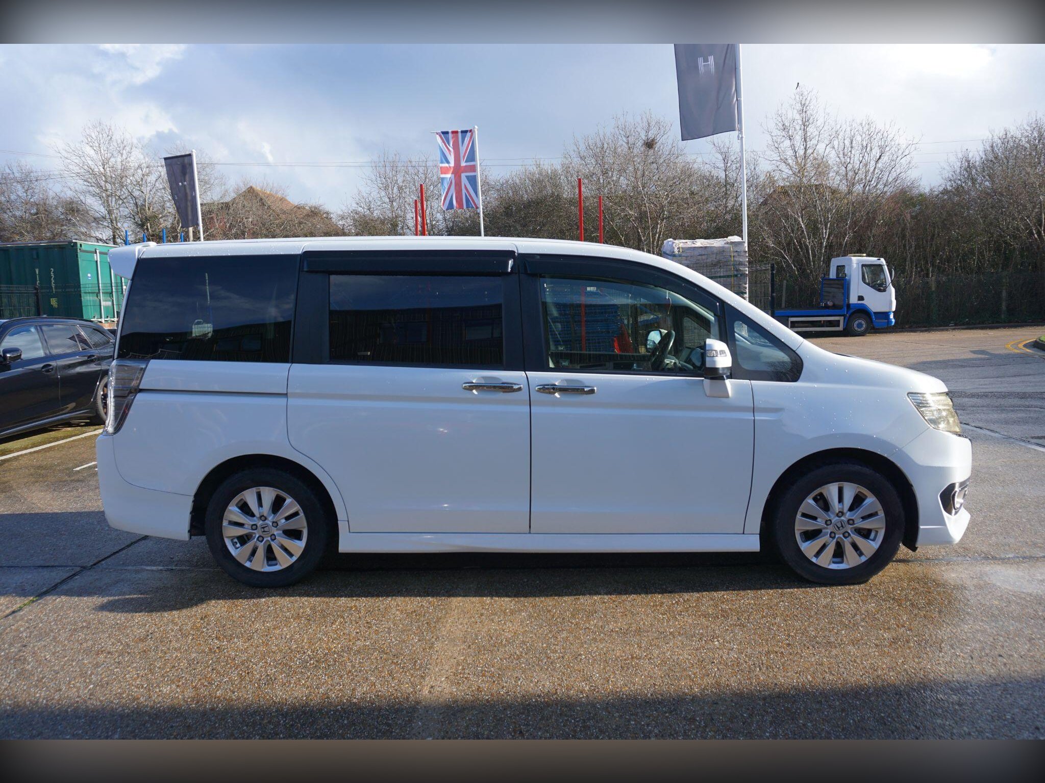 Another stunning Pearl White Honda Stepwagon Spada 2.0 Cool Spirit has arrived in our stock now. V5C present, and registration is HT13KLE, Financing available from 5.6% APR (final rate subject to credit score) and all major credit cards are accepted. Road Tax £360/Year.Honda Stepwagon is one of the most popular compact MPVs in Japan and the Far East countries. The car was 1st registered in April. 2013 in Japan, and it has 69954miles (112581KM) on the clock. Genuine facelift model, VSA, Engine Start/Stop as standard. All 3-point seatbelts are available on the passenger seats. The lap belt is no longer available on the 3rd row seat. As a Cool Spirit model, it has both power sliding doors, cornering lights, cruise control, partial leather seats, and ECO mode. I drove a 3000-mile round trip on the same model last Summer, the engine performance is great, and the 2.0 I-VTEC engine produces enough power for motorway trips and reasonable fuel consumption for town running as well. Although it was designed as a compact people carrier, it comes with all the essential equipment you need for a long-distance trip or a daily driving transporter. It can also be used as a minivan as the 3rd-row seat can be stored in the boot completely flat, giving a huge boot space. The 2nd-row seat can also be folded and moved forward to create maximum space if you need to use it as a day camper for sleeping. The aisle between the 2 captain seats gives easy access to the 3rd-row seat without folding or moving any seats. I would strongly recommend viewing and test-driving it if you consider purchasing a Vauxhall Zafira, Nissan Serena, or similar vehicle. I am sure you would like the driving experience and practicality for daily life. We also offer to fit a 10-inch touchscreen upgrade English stereo (option) that comes with Apple CarPlay and Android Auto. Delivery can also be arranged. We have asked our partner garage to complete a clear wax underneath sealing, a fresh MOT, and a health inspection before we hand it over to the new owner. The car also comes with a 3-month, extendable warranty. -